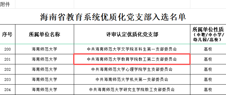 海南省教育系統(tǒng)優(yōu)質(zhì)化黨支部評選結(jié)果正式揭曉,我院教工第一黨支部與教工第二黨支部憑借扎實的黨建工作基礎(chǔ)、創(chuàng)新的建設(shè)舉措及突出的育人成效,雙雙成功入選,充分彰顯了學(xué)院黨建工作的強勁實力與示范引領(lǐng)作用。