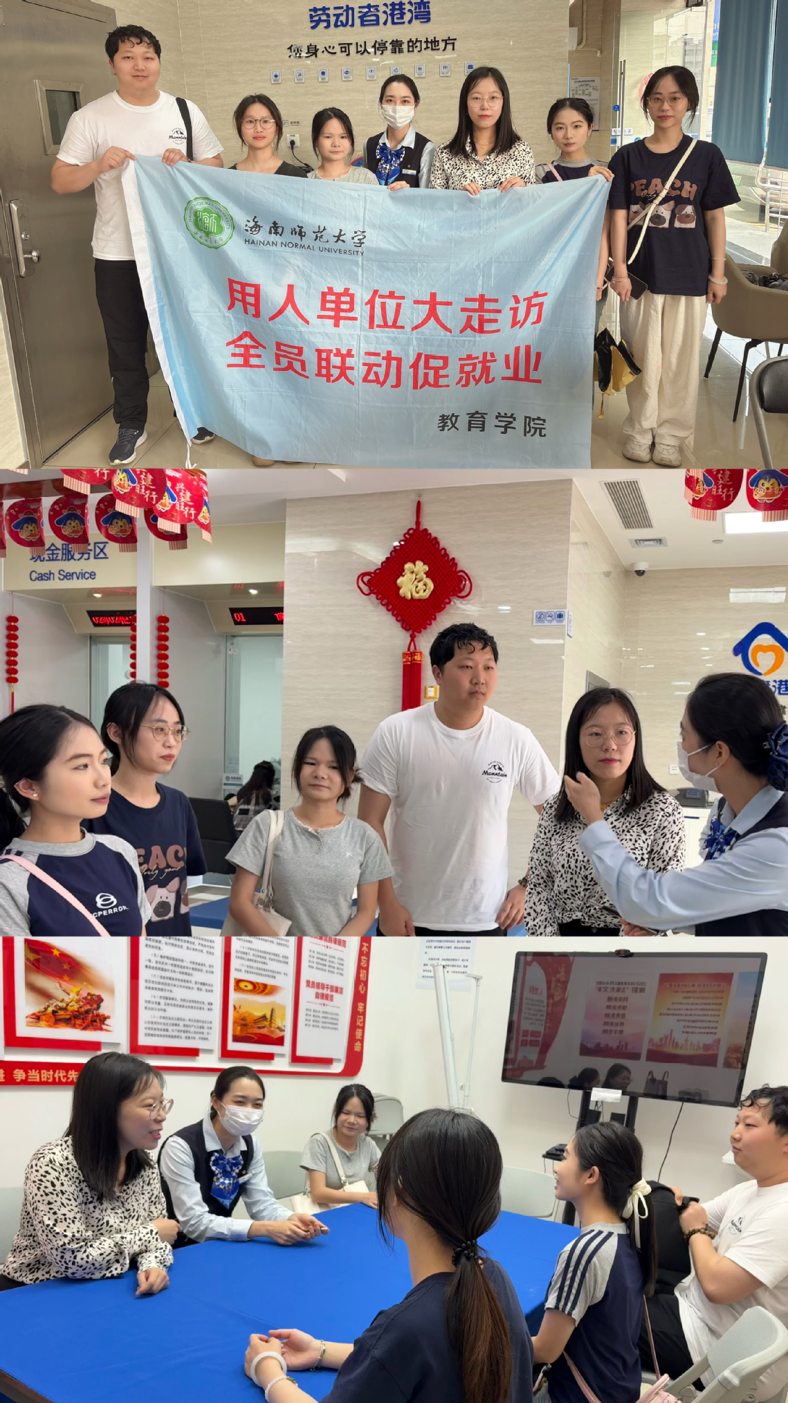 為深化產(chǎn)教融合,拓寬我院學(xué)生多元化就業(yè)路徑,2025年3月28日下午,輔導(dǎo)員宋麗妮帶領(lǐng)5名畢業(yè)生前往中國建設(shè)銀行海口文明東路支行開展參訪交流活動。通過現(xiàn)場參觀、職業(yè)發(fā)展座談等,幫助學(xué)生拓展職業(yè)視野。