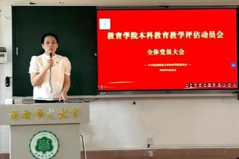 2025年6月24日,為深入貫徹學校黨委部署,教育學院召開本科教育教學審核評估全體黨員動員會。學院黨委書記黨意作動員講話,崔友興副院長布置審核評估的相關(guān)工作,全體黨員參會。