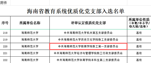 海南省教育系統(tǒng)優(yōu)質(zhì)化黨支部評選結(jié)果正式揭曉,我院教工第一黨支部與教工第二黨支部憑借扎實的黨建工作基礎(chǔ)、創(chuàng)新的建設(shè)舉措及突出的育人成效,雙雙成功入選,充分彰顯了學(xué)院黨建工作的強勁實力與示范引領(lǐng)作用。